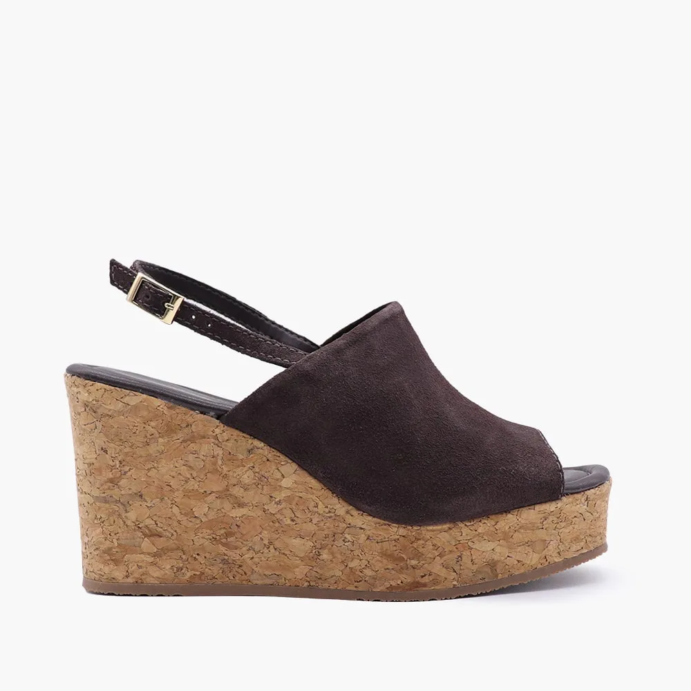 Comodidad y estilo en un solo diseño. Esta sandalia con plataforma tipo cuña en acabado corcho realza tu altura sin sacrificar el confort. Perfecta para acompañarte de dia a la noche con un look fresco.